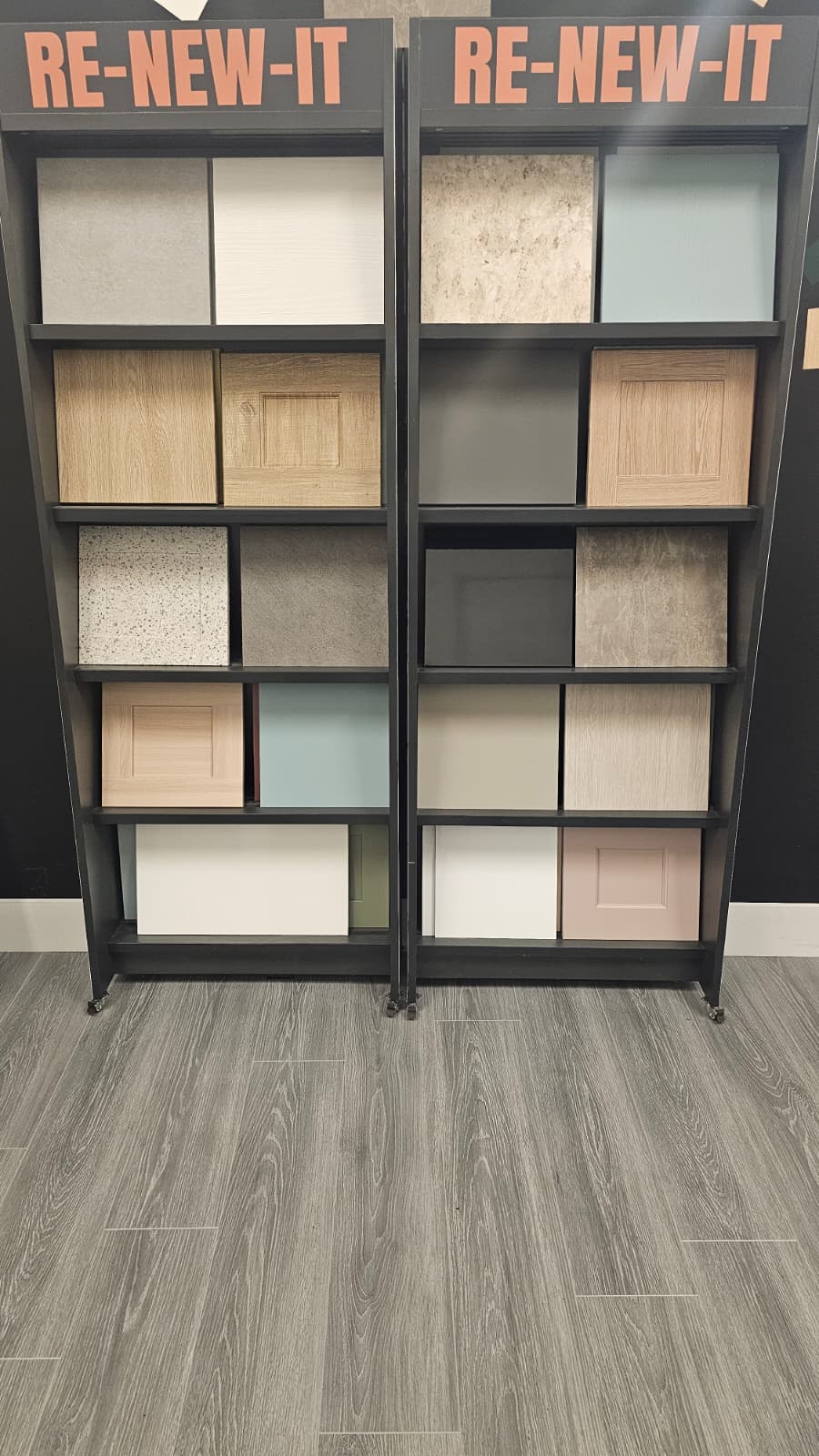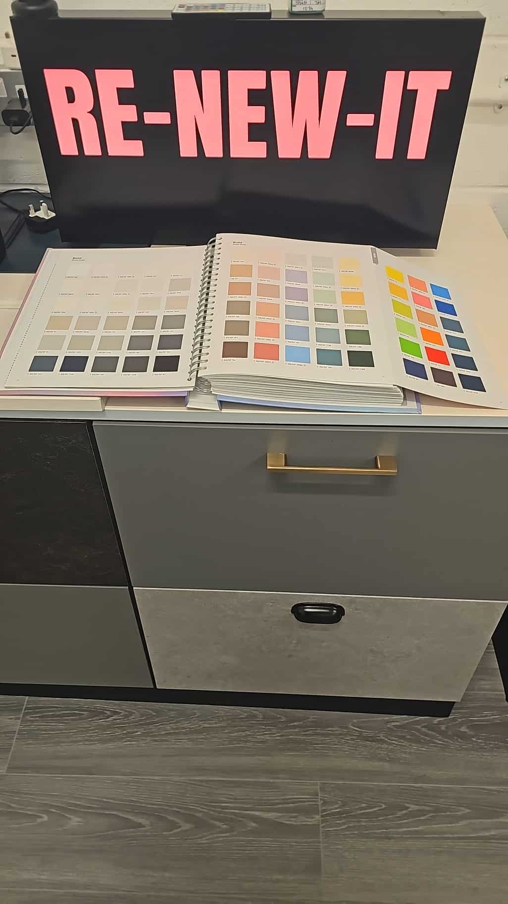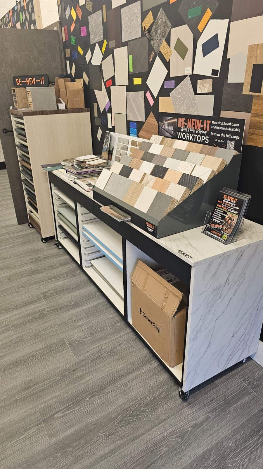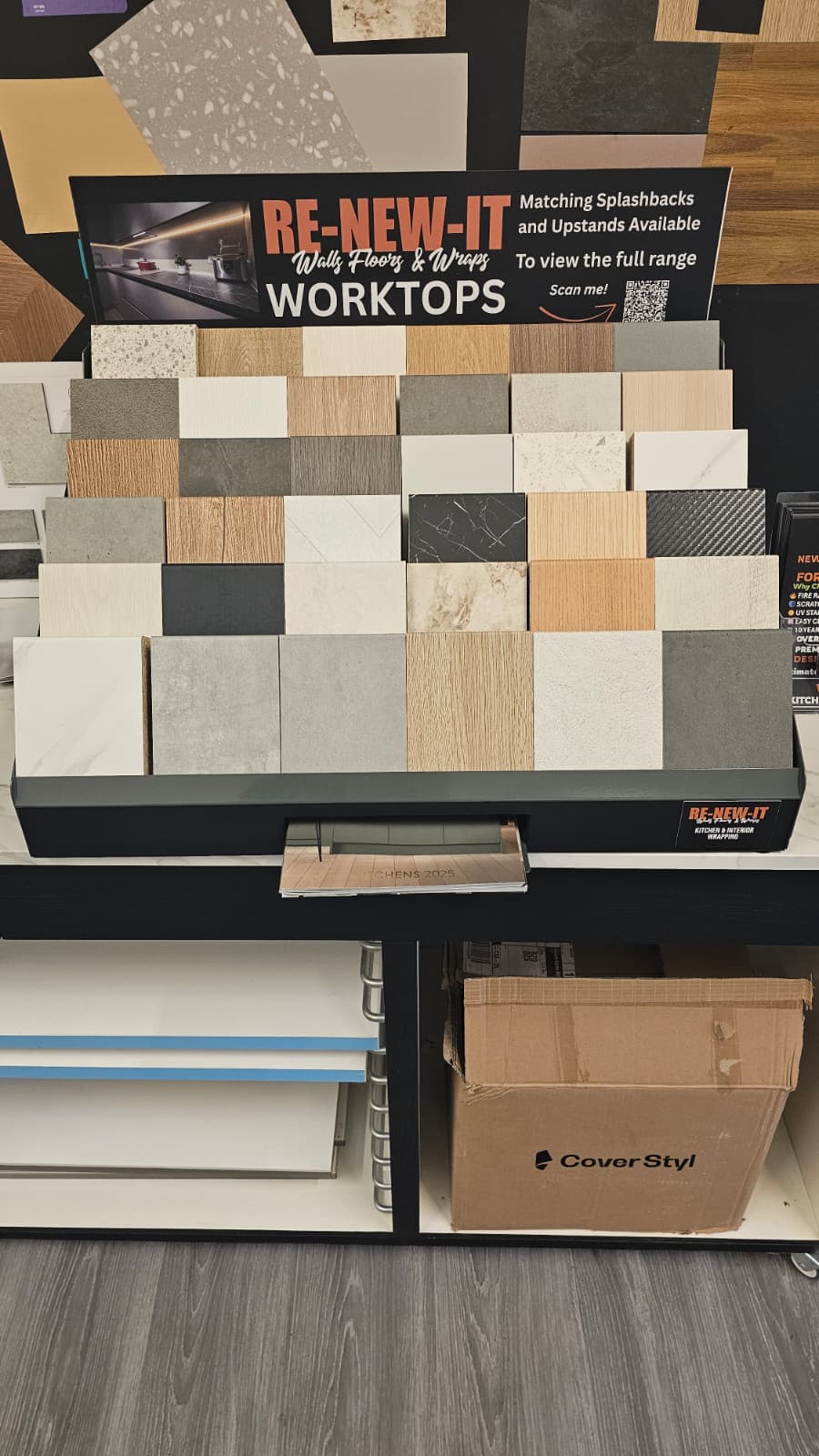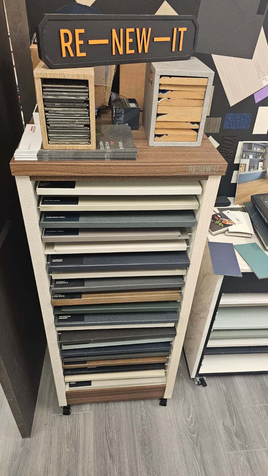 Come and visit the Re-New-It showroom in Peterborough to see our full collection of premium vinyl wraps in action! From bold colours to natural finishes, we have a style for every taste. Work with our friendly team to explore ideas, match samples, and create a stunning transformation for your kitchen, furniture, or commercial space.